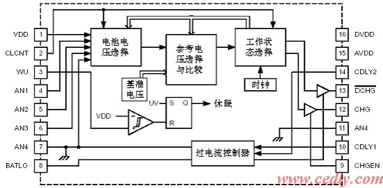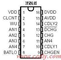 2.选择3或4节电池充电工作状态 当电池组为3节电池时,引脚2CLCNT应连到引脚16DVDD,同时将引脚6AN3与引脚7AN4连到一起,当电池组为4节电池时,引脚2CLCNT接地(即连到引脚7AN4),AN3引脚接至电池组最下面一只电池的正极。